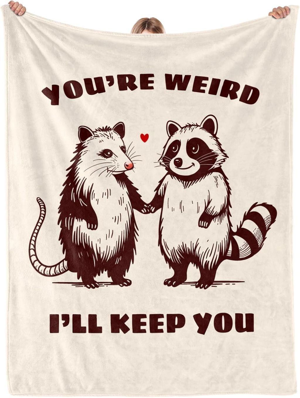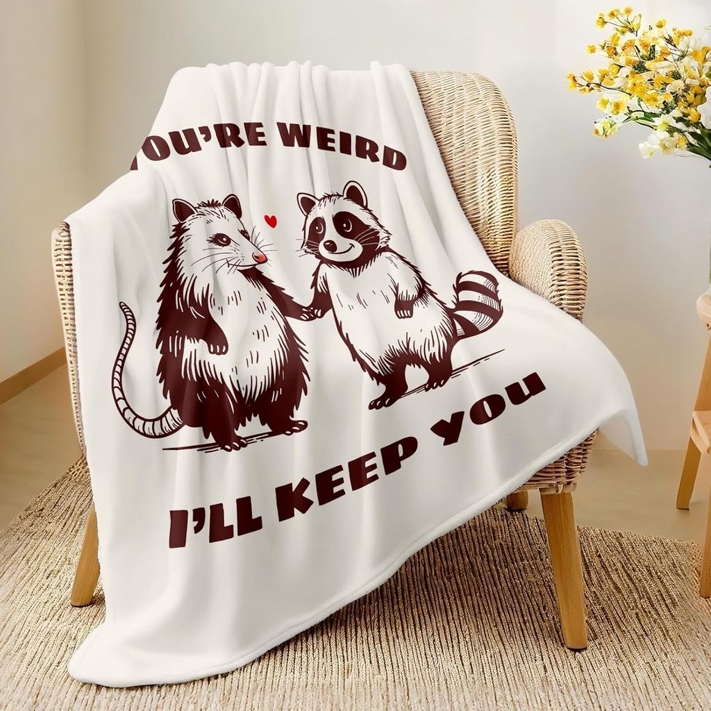 Cozy Best Friends Throw Blanket, Cute Raccoon and Opossum Blanket